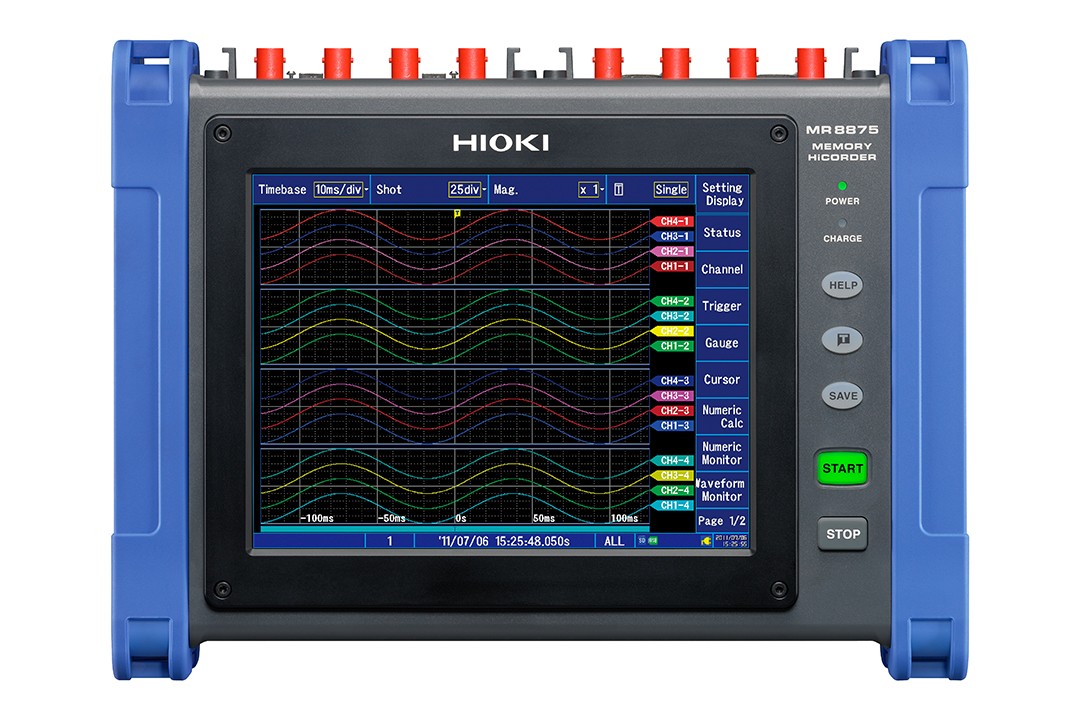 存储记录仪MR8875-301000V输入&畸变、温度、CAN记录,多通道记录仪最大16通道+8个逻辑通道 扫描单元最大60ch 500kS/s 内存 32 MW (8 MW/单元) 16bits A/D 分辩率 USB、SD卡● MR8905 输入单元,具有 1000 V 输入和 DC/RMS 测量功能● 用于热电偶温度测量的多通道记录仪,最多可测量 60ch,测量速度高达 10 ms●以
