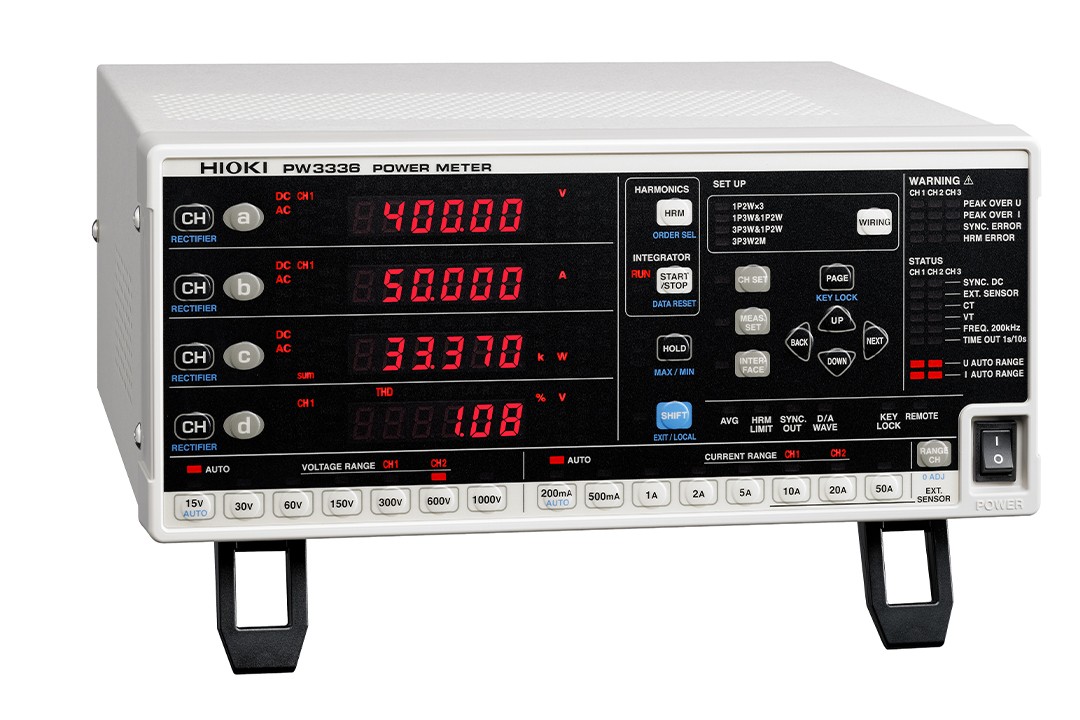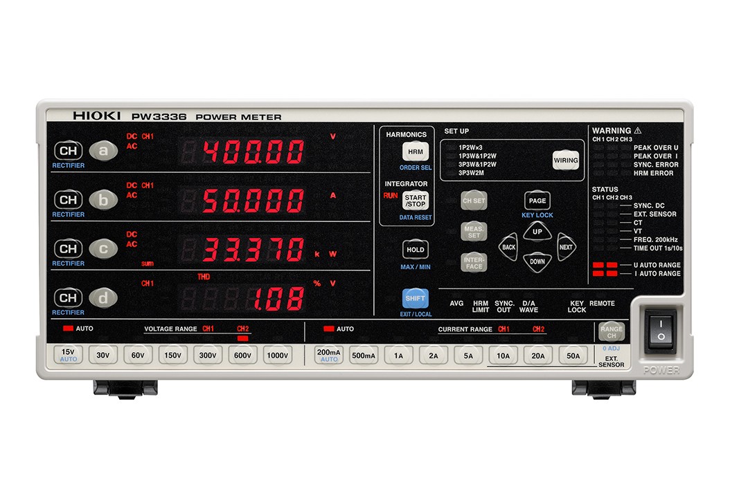 | 基本精度 (有功功率) | ±0.1% rdg. ±0.1% f.s. (DC) ±0.1% rdg. ±0.05% f.s. (45 Hz ~ 66 Hz, 输入< 50% f.s.时) ±0.15% rdg. (45 Hz ~ 66 Hz, 50% f.s. ≤ 输入时) |