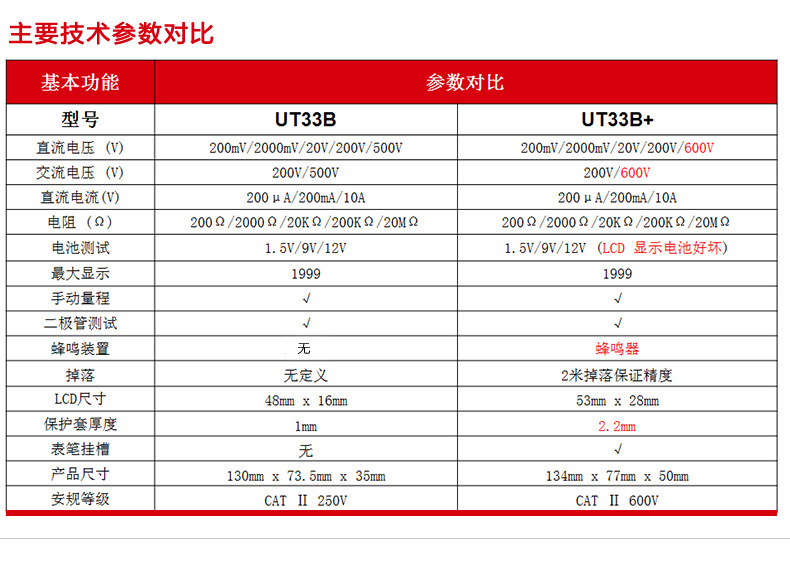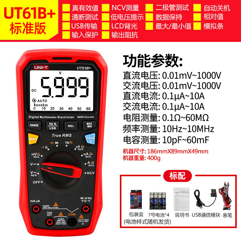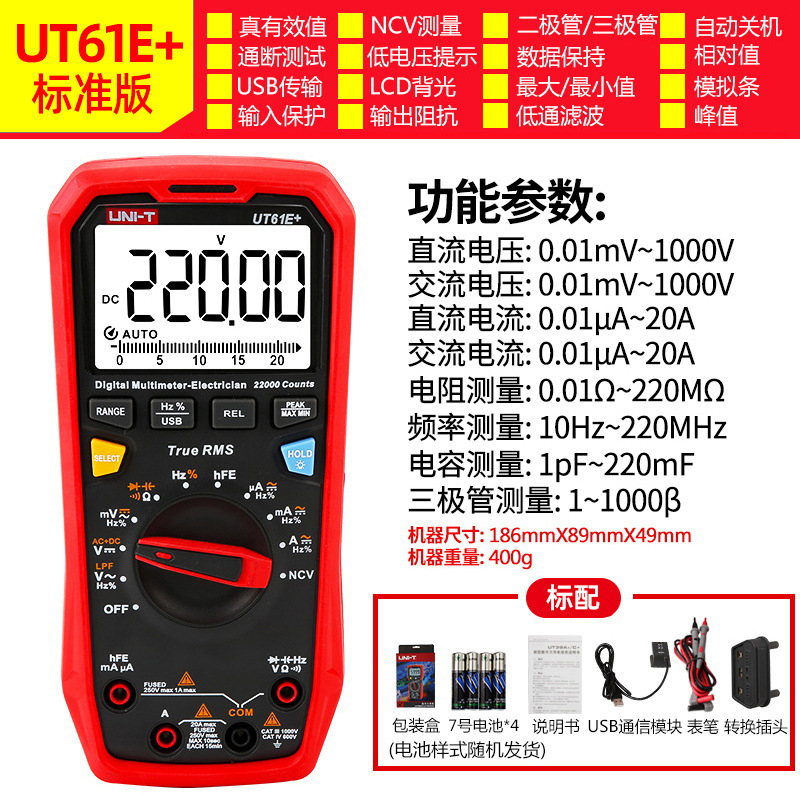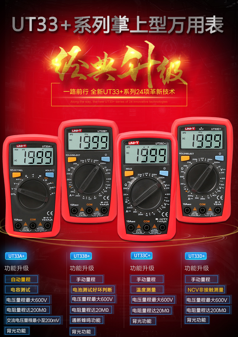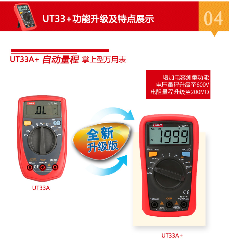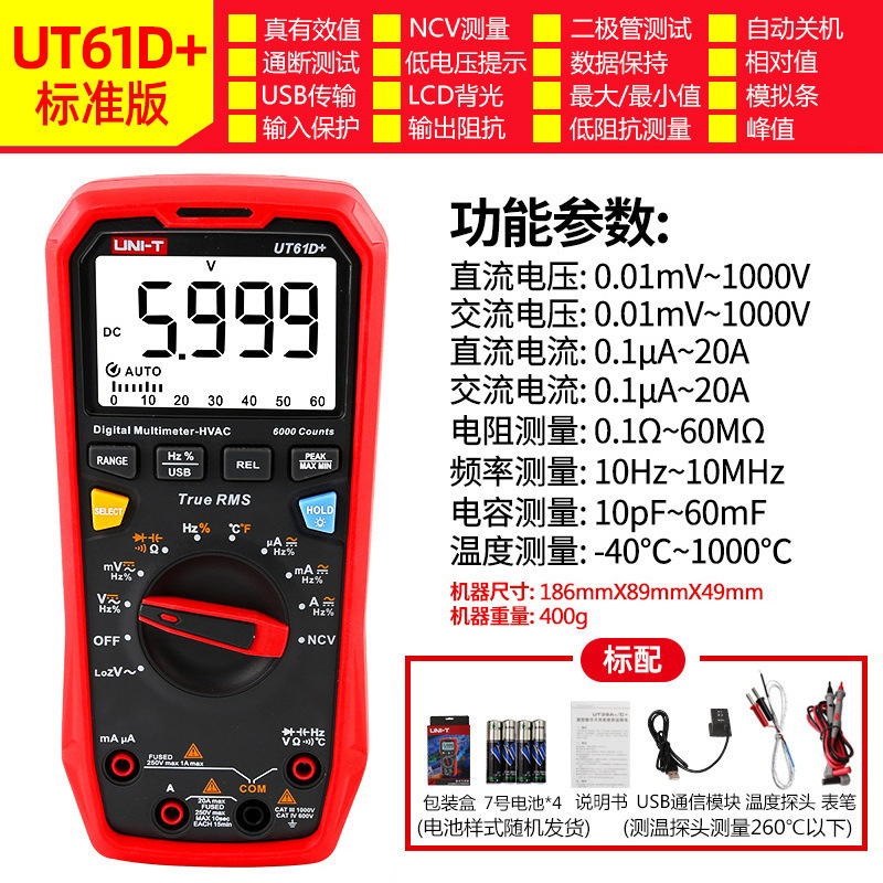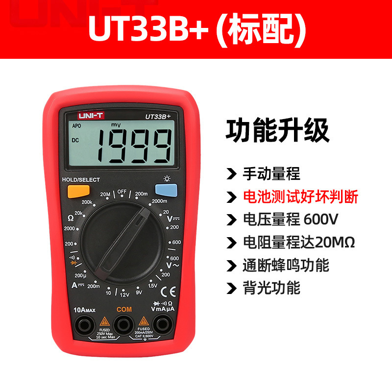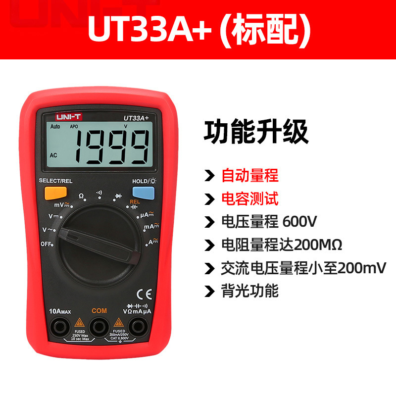 优利德(UNI-T)UT33D+万用表数字高精度万用表万能表测电容万能表