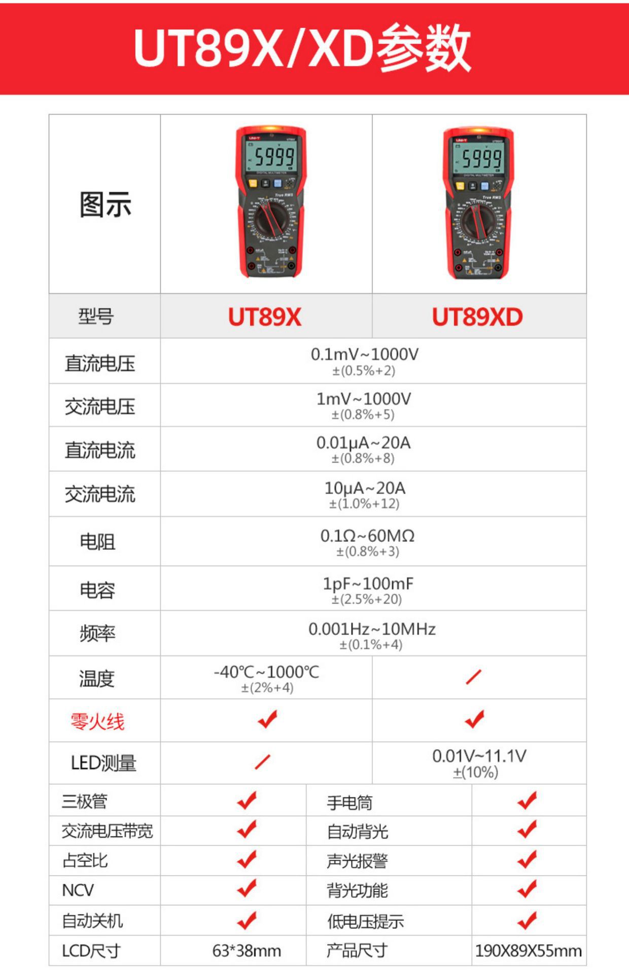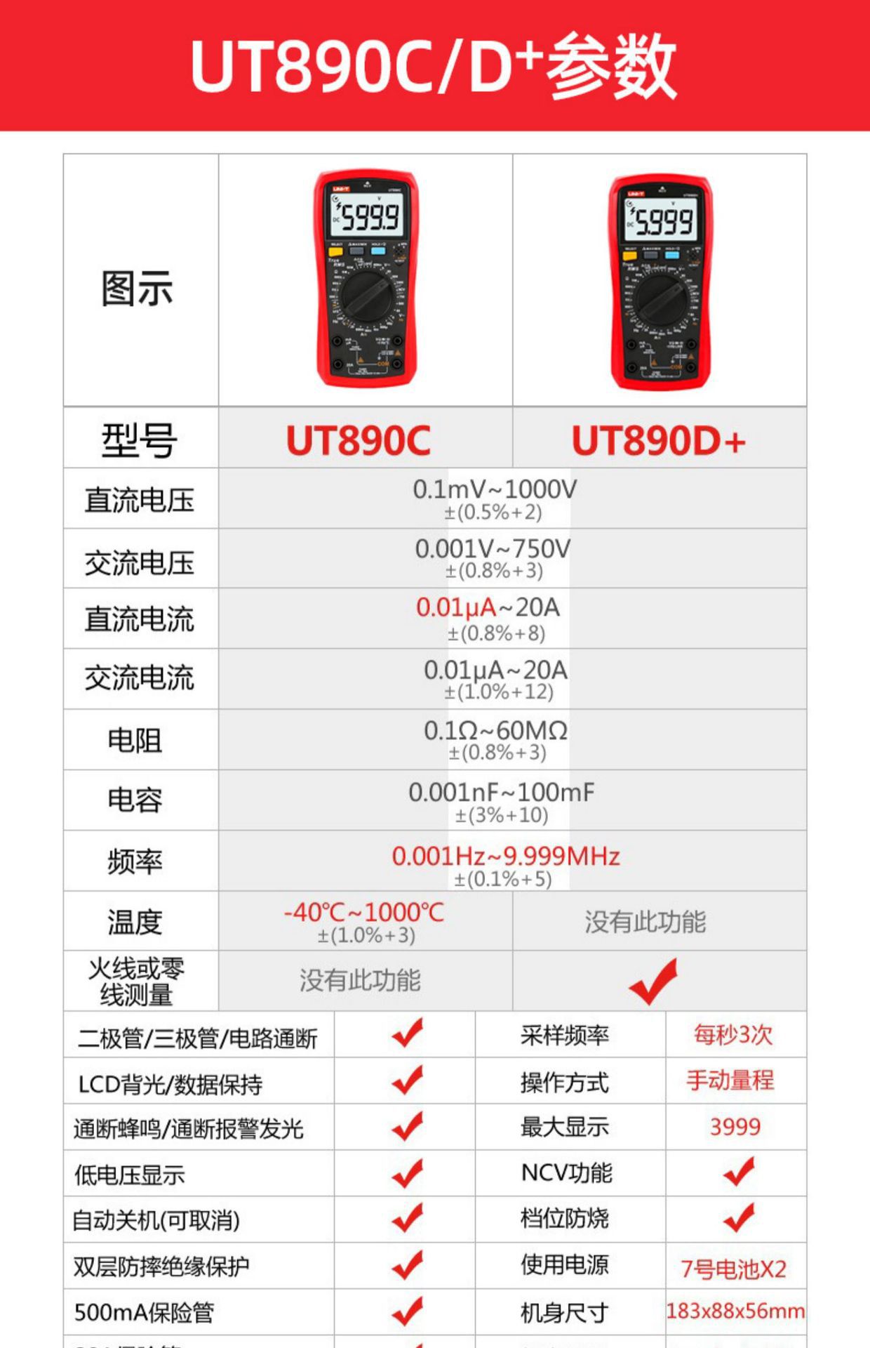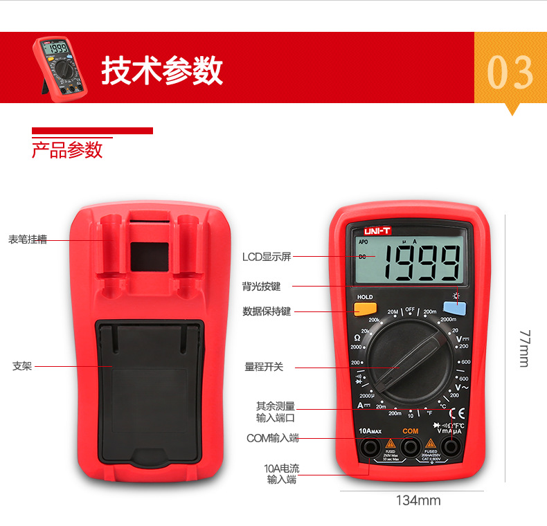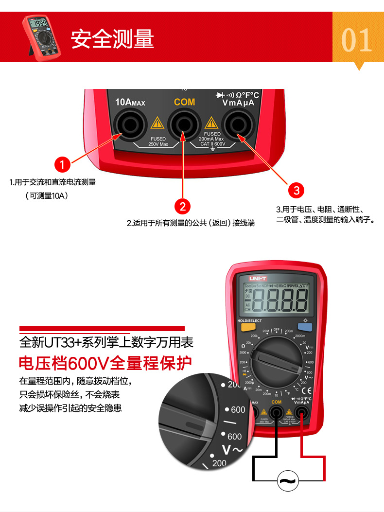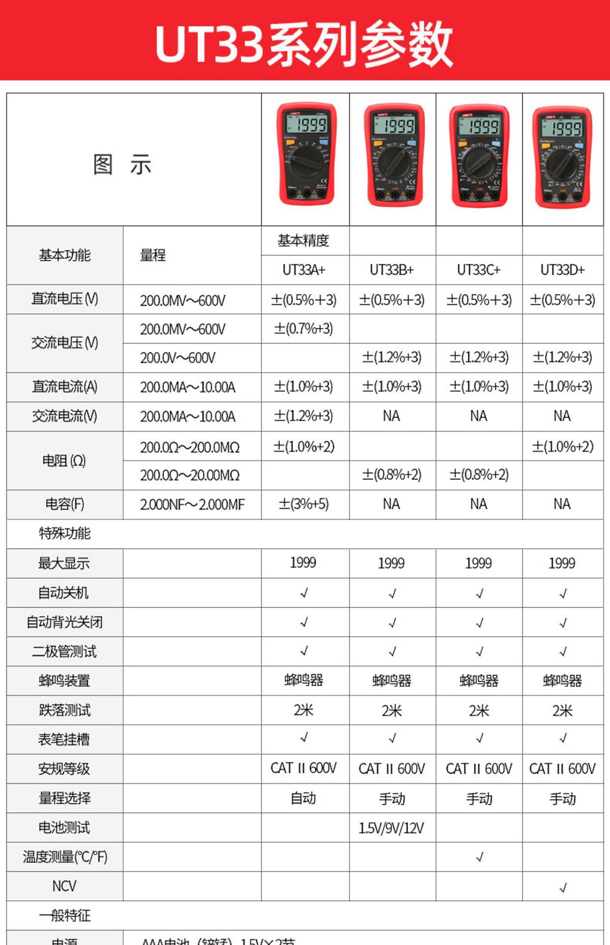 优利德(UNI-T)UT33D+万用表数字高精度万用表万能表测电容万能表
