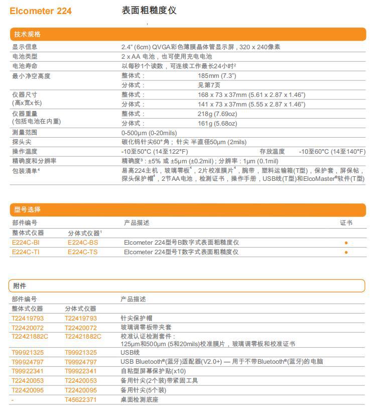 E224C-TI | E224C-TS | Elcometer 224型号T数字式表面粗糙度仪 |