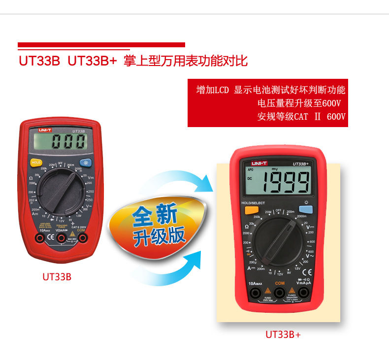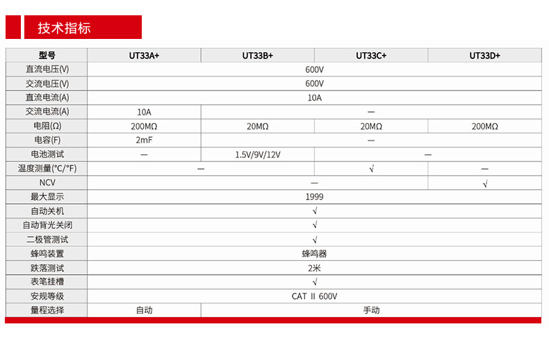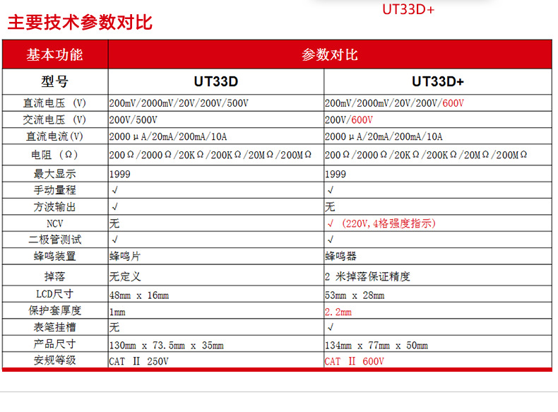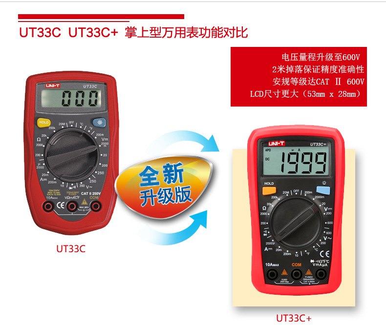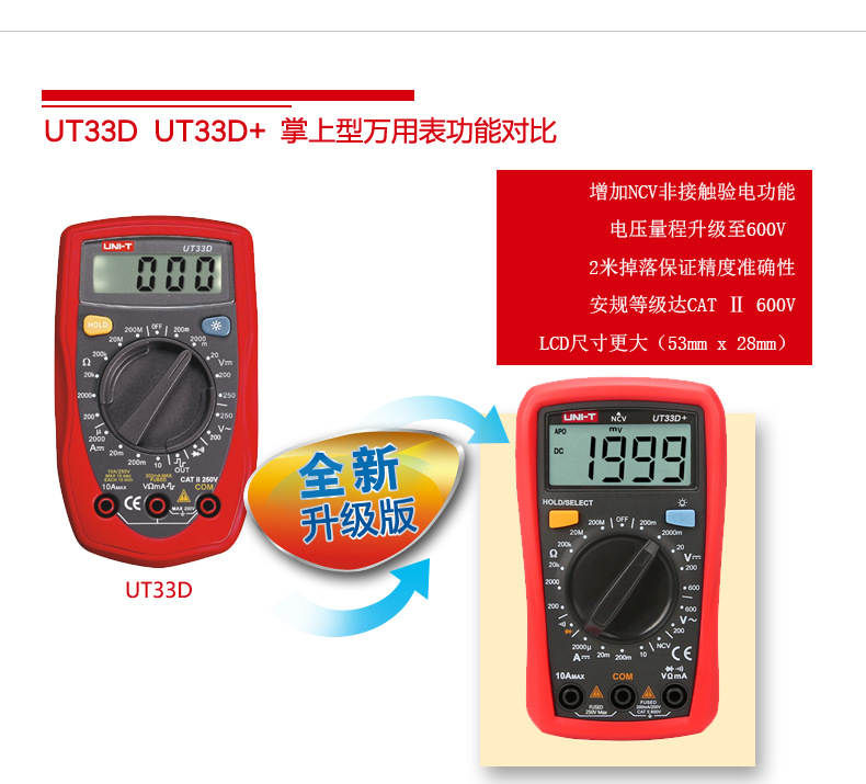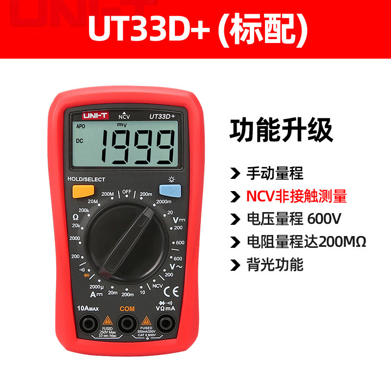 优利德(UNI-T)UT33D+万用表数字高精度万用表万能表测电容万能表