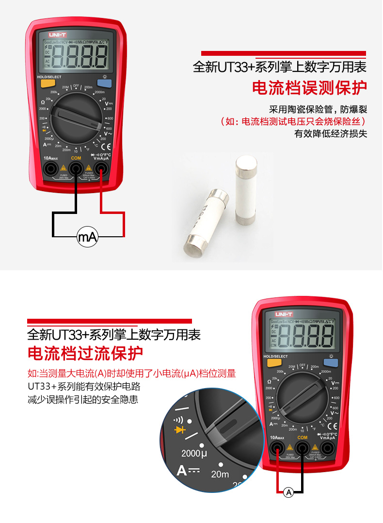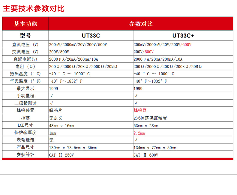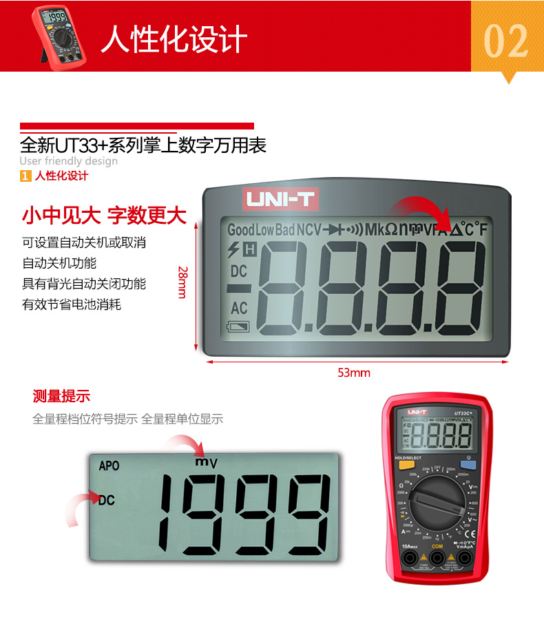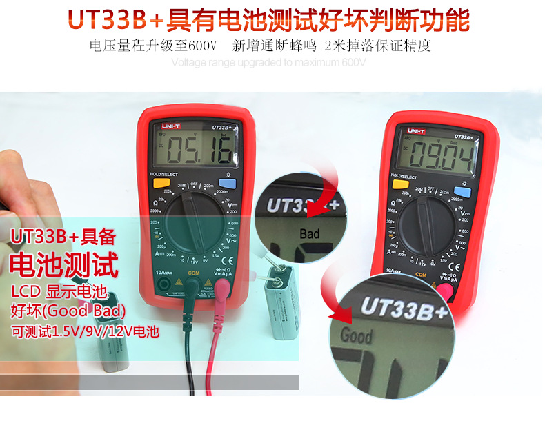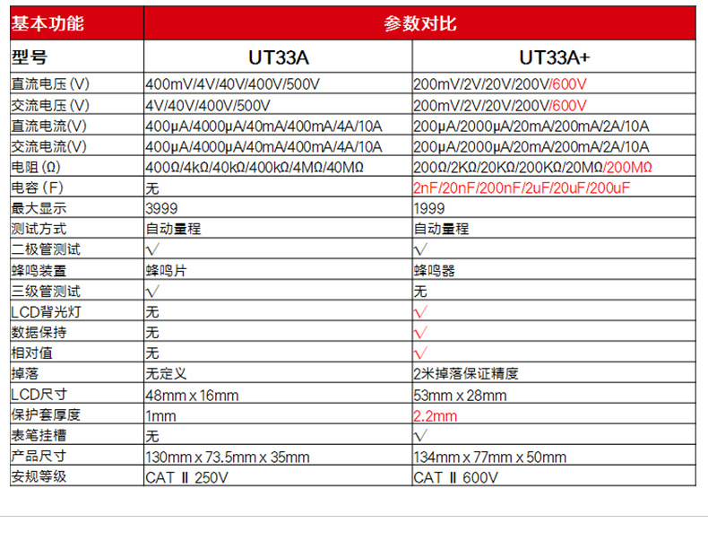 优利德(UNI-T)UT33D+万用表数字高精度万用表万能表测电容万能表